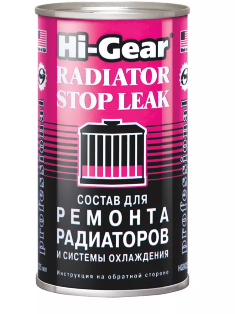Герметик радиатора HG9025 HI-Gear - состав для надёжного устранения течей тосола/антифриза и предотвращения их появления в будущем. Подходит для медных, пластиковых и композитных радиаторов, алюминиевых теплообменников, трубок радиатора, уплотнений помпы, термостата, патрубков радиатора и крана отопителя.