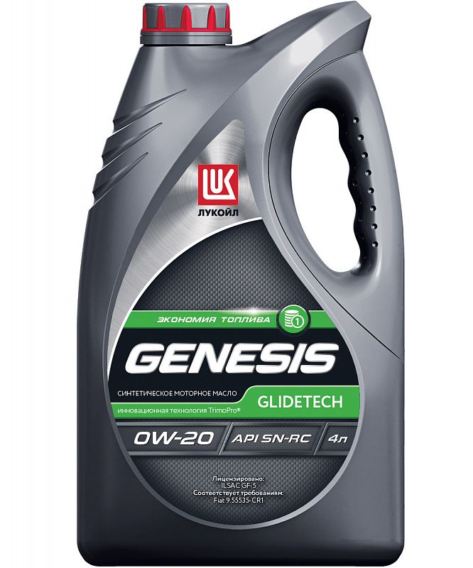 ЛУКОЙЛ GENESIS GLIDETECH 0W-20 - полностью синтетическое моторное масло для двигателей последнего поколения. Обеспечивает беспрепятственный пуск при отрицательных температурах, топливную экономичность экстра-класса и превосходную защиту двигателя на протяжении всего интервала замены. Масло разработано на основе высококачественных синтетических базовых компонентов с применением передовых технологий присадок (TrimoPro®).