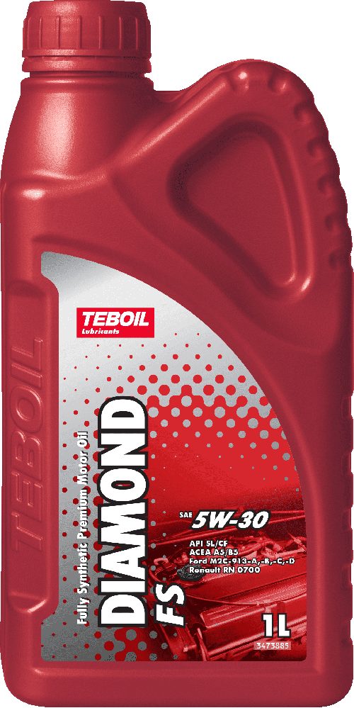 Масло Teboil Diamond FS 5W-30 предназначено для высокофорсированных бензиновых и дизельных двигателей легковых автомобилей и легкого коммерческого транспорта, требующих применения маловязких масел в соответствии с требованиями ACEA A5/B5 и A1/B1. Компания Ford рекомендует к применению в своих двигателях масла данного уровня качества с 1997 г.