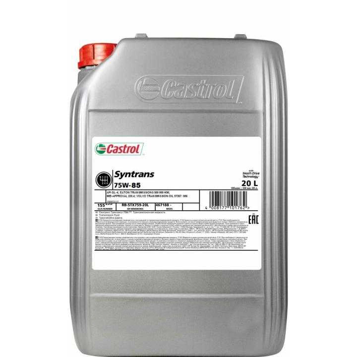 Castrol Syntrans 75W-85 – полностью синтетическое трансмиссионное масло, рекомендованное для большинства механических коробок передач коммерческой техники (грузовиков, автобусов, лёгкого коммерческого транспорта), где требуются смазочные материалы, соответствующие классификации API GL-4. Как правило, эти агрегаты больше и подвержены воздействию более высоких нагрузок и температур, чем МКПП легковых автомобилей, поэтому Castrol Syntrans 75W-85 специально разработано для этих условий эксплуатации и одобрено рядом производителей техники.