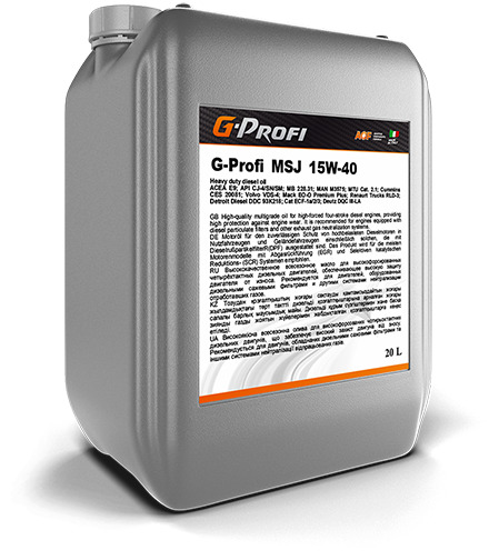 G-Profi MSJ 15W-40 – всесезонные моторные масла с пониженным содержанием серы, фосфора и золы (Mid-SAPS технология) на полусинтетической основе. Разработаны для американских и других тяжелонагруженных дизельных двигателей с турбонаддувом, отвечающих экологическим требованиям Евро-5, 6 и оборудованных различными системами снижения токсичности выхлопных газов, включая сажевые фильтры (DPF).
