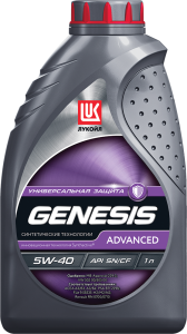 LUKOIL GENESIS ADVANCED 5W-40 – всесезонное моторное масло на основе синтетических технологий для применения в бензиновых и дизельных двигателях новых и подержанных автомобилей импортного и отечественного производства в тяжелых режимах эксплуатации. Масло лицензировано в соответствии с наивысшей категорией эксплуатационных свойств API SN.