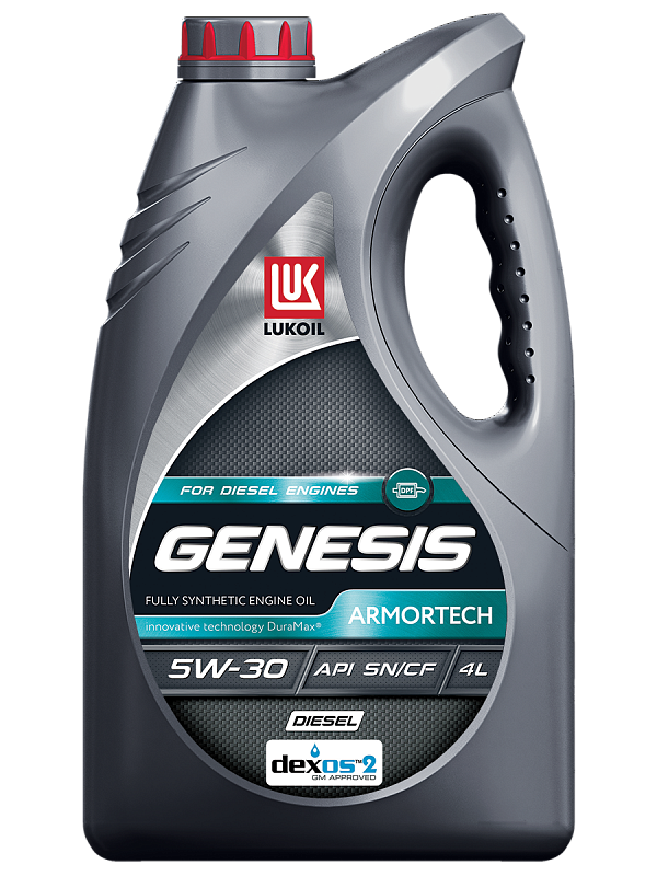 LUKOIL GENESIS ARMORTECH DIESEL 5W-30 – синтетическое моторное масло с пониженной сульфатной зольностью для современных дизельных легковых автомобилей, в том числе оборудованных фильтром сажевых частиц (DPF) и требующих применения масел класса «Mid SAPS». Масло производится с применением передовой технологии DuraMax®.