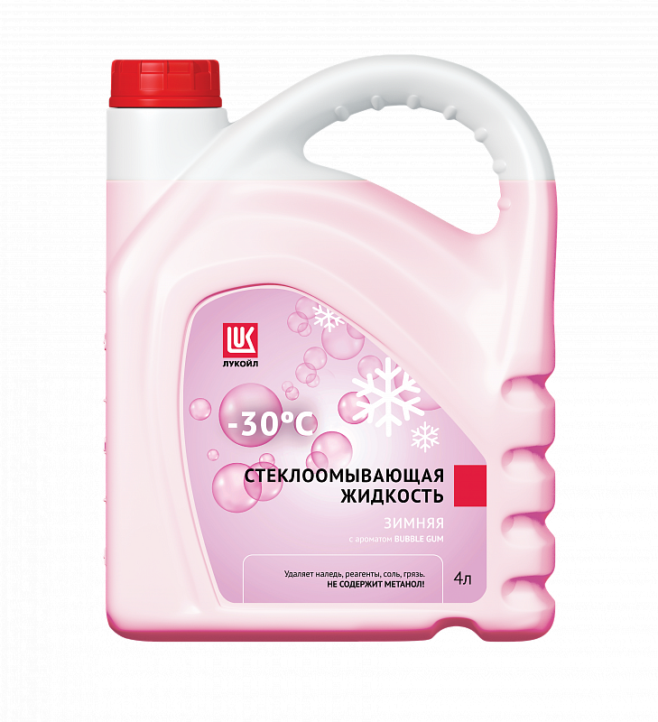 Стеклоомывающая жидкость Лукойл -30 Бабл Гам представляет собой композицию на основе деминерализованной воды или водного раствора изопропилового спирта.