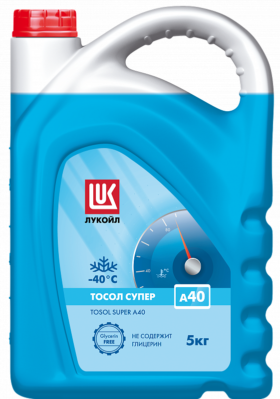 ЛУКОЙЛ ТОСОЛ СУПЕР А 40 - охлаждающая низкозамерзающая жидкость на основе этиленгликоля с применением антикоррозионных, противопенных и стабилизирующих компонентов. Предназначена для использования в замкнутых системах охлаждения двигателей внутреннего сгорания легковых и грузовых автомобилей, работающих при температуре окружающей среды не ниже - 40°С. Обеспечивает эффективное охлаждение двигателя и предохраняет систему от коррозии и образования накипи. Нейтральна по отношению к резиновым шлангам и уплотнительным деталям из резины и пластмасс.